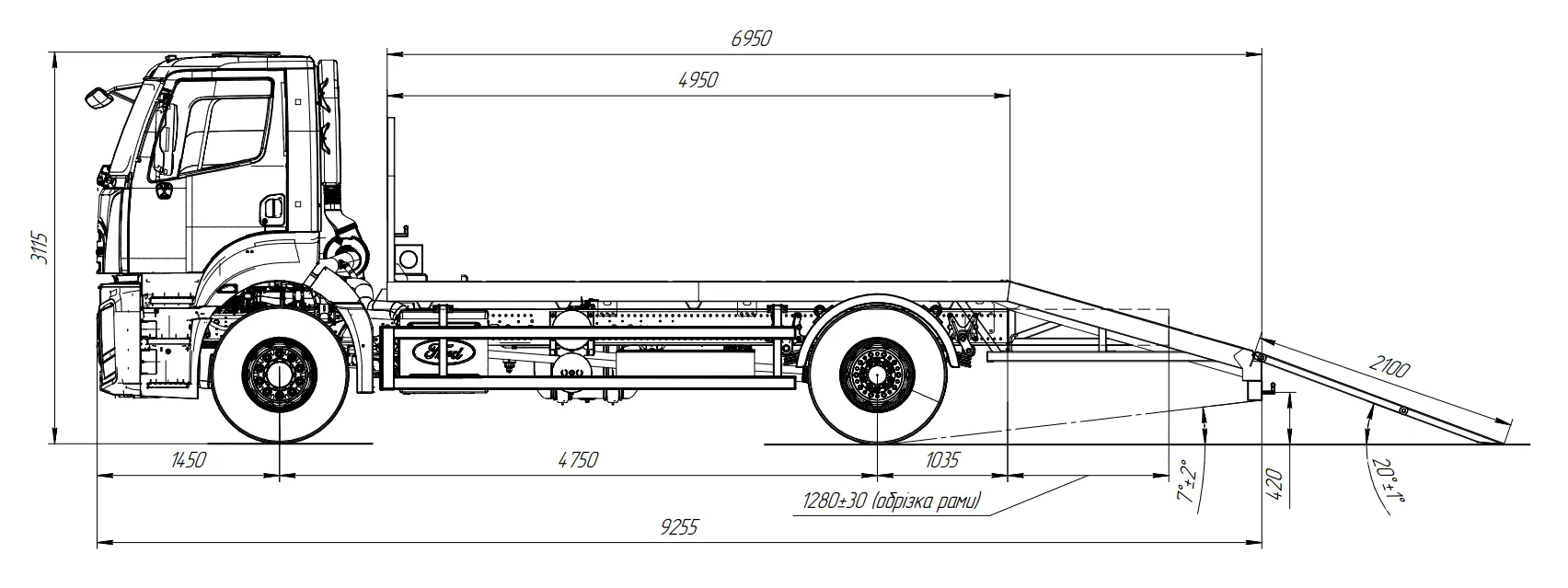 | Розміри платформи (Д×Ш) | 6950 × 2500 мм |