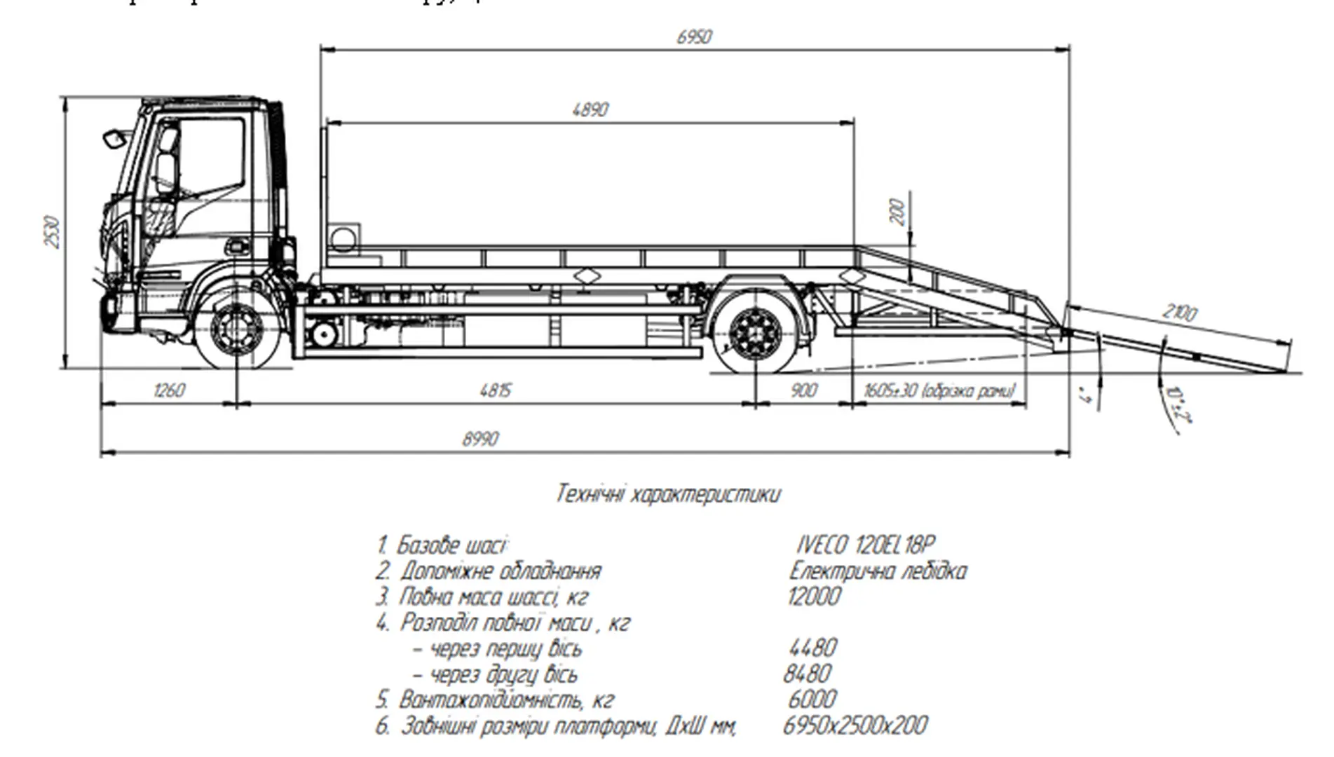 Автомобіль IVECO 120 EL 18P – евакуатор з лебідкою