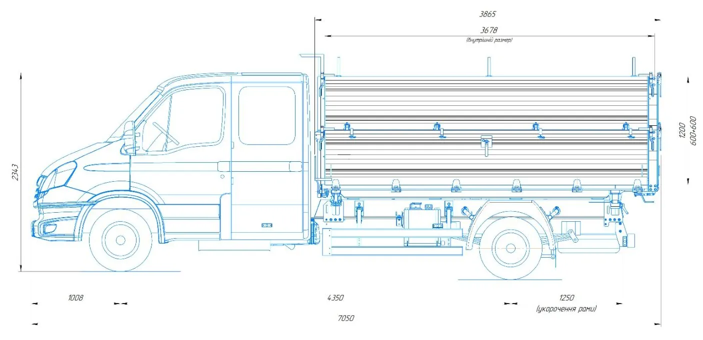 | Габарити кузова (Д×Ш×В) | 3865 × 2340 × 1200 мм |