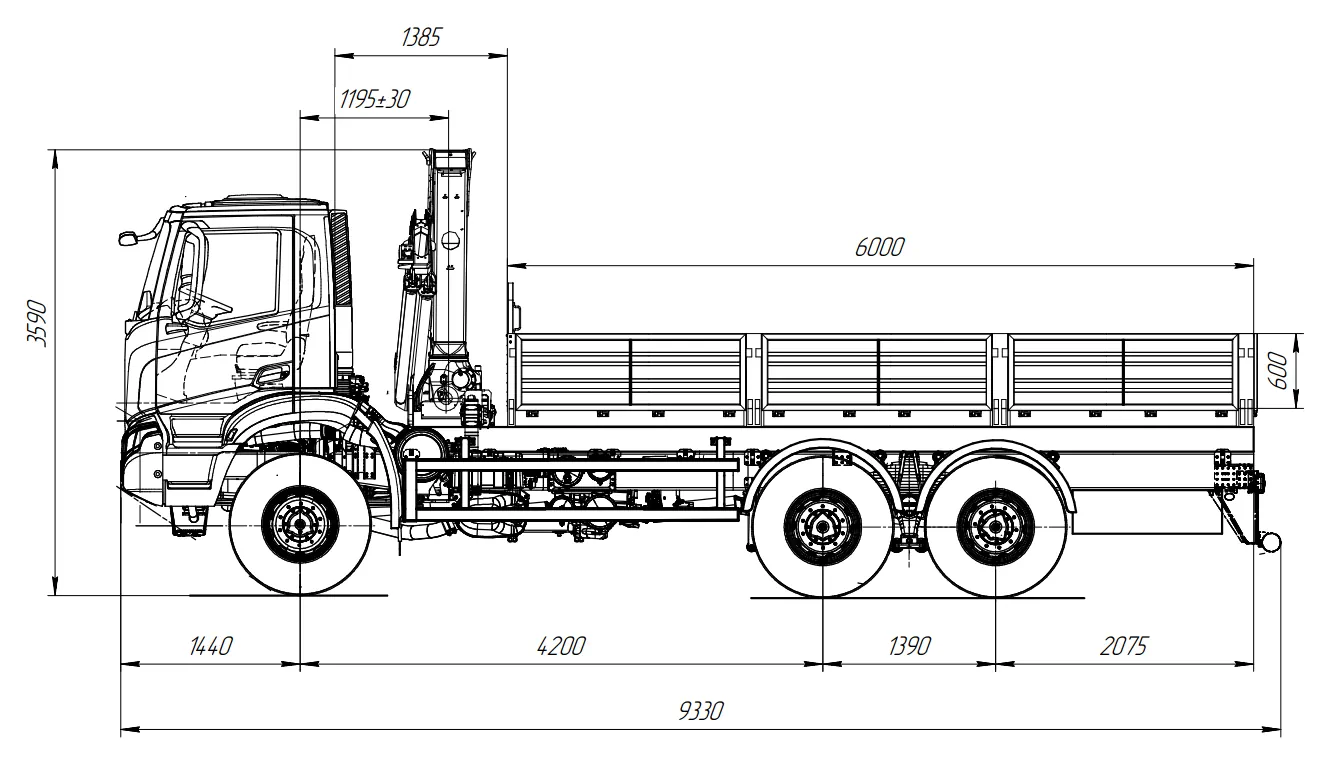 | Розміри бортової платформи (Д×Ш×В) | 6000 × 2550 × 600 мм |