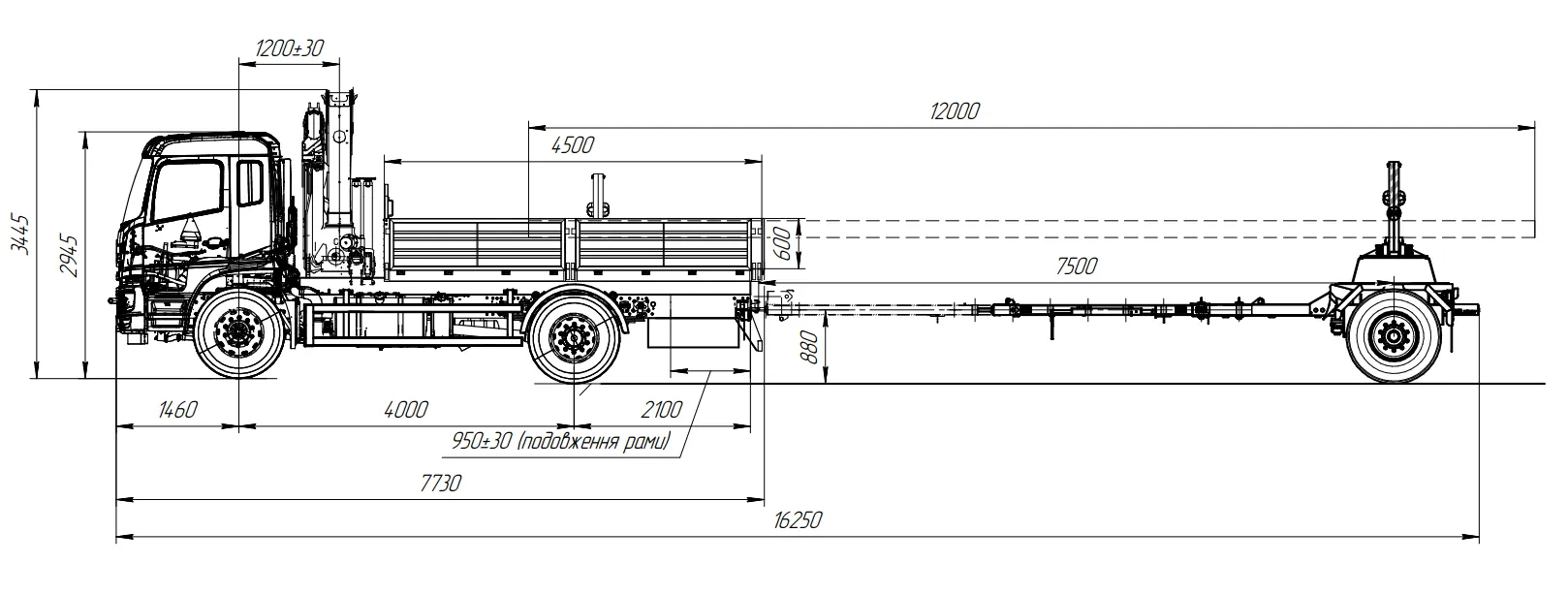 - Можливість перевезення довгомірних вантажів із причепом-розпуском.