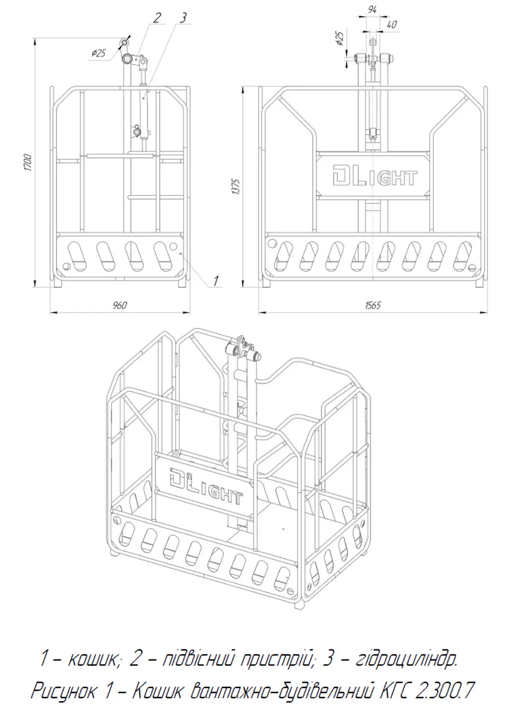 Кошик встановлюється на крани-маніпулятори та забезпечує безпечне піднімання персоналу