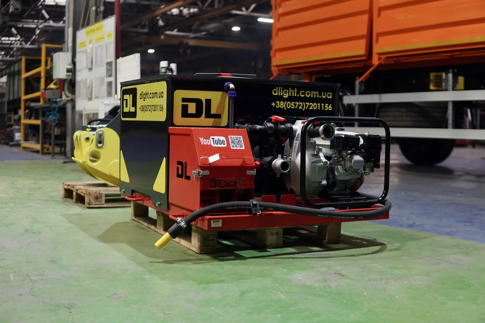 Мотопомпа пожежна (універсальний малий пожежний модуль DL-ПМ1) виробництва компанії DLight транспортується до місця загоряння в кузові автомобіля, пікапа, причепа. На його базі було створено також Пожежний причіп-цистерну ПЦ 0505 (транспортується за допомогою буксирування легковим автотранспортом).