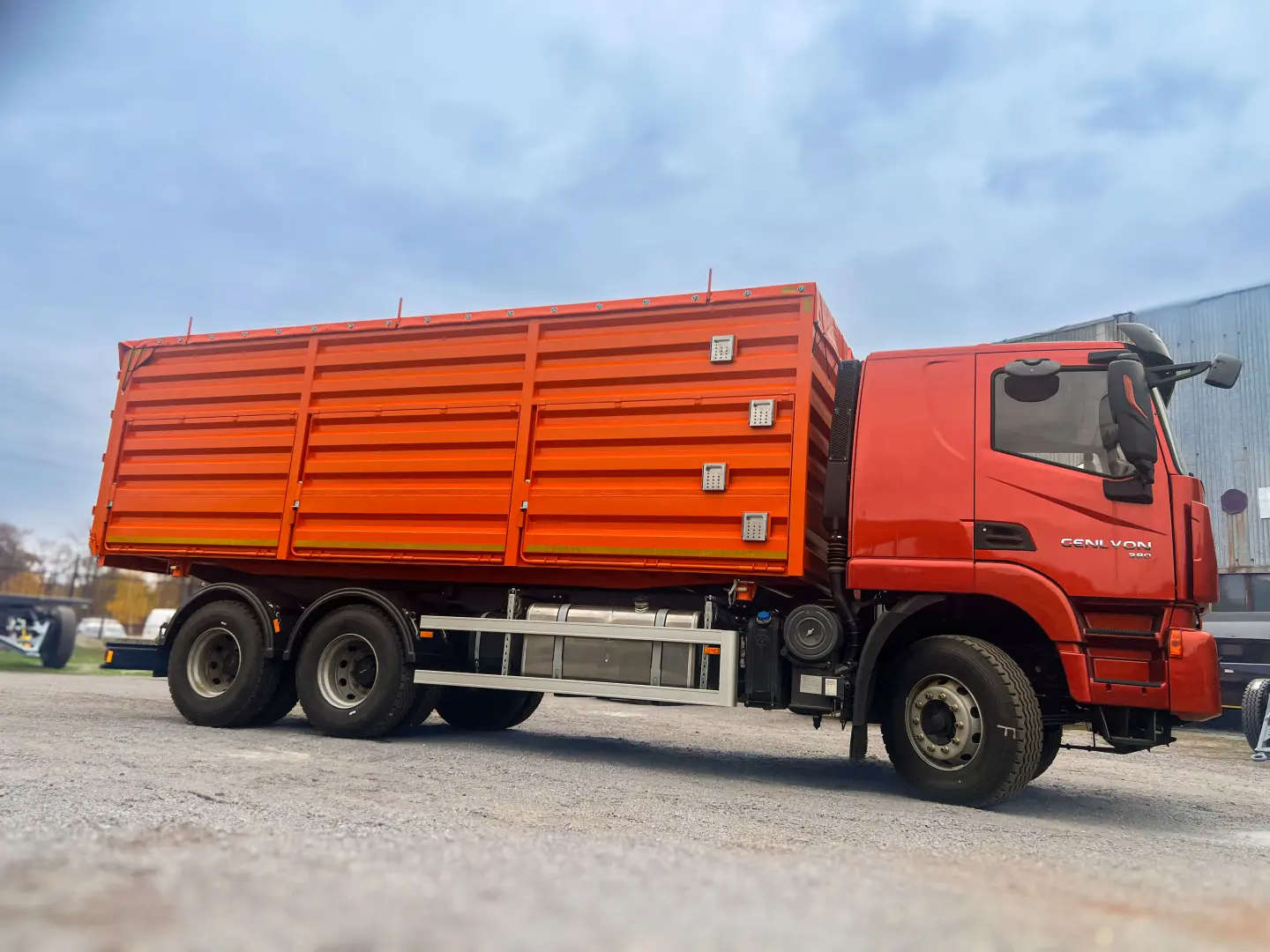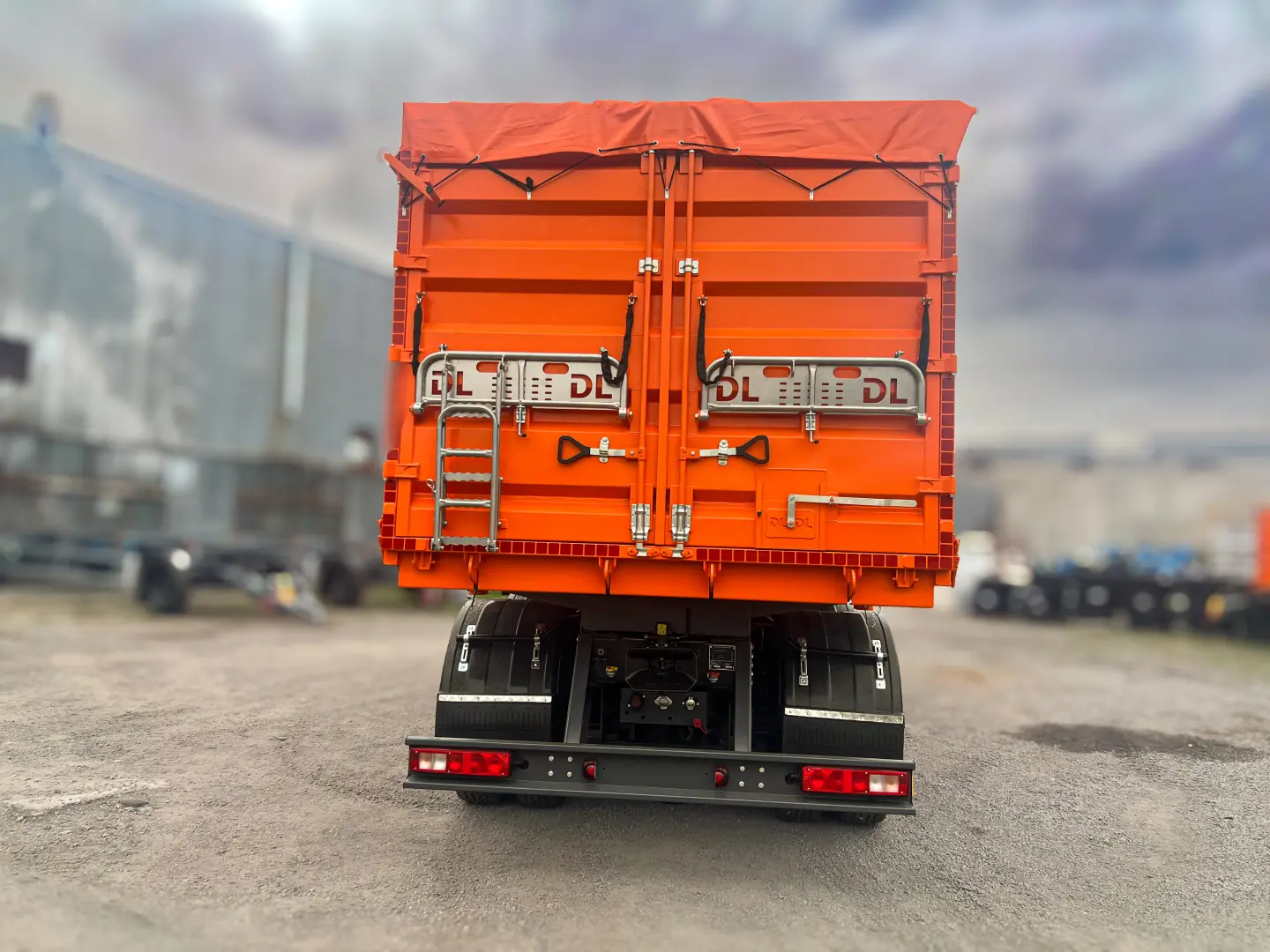 Самоскидний кузов виготовлений зі високоміцної спеціальної сталі S355, що забезпечує довговічність конструкції та стійкість до інтенсивних навантажень. У стандартну комплектацію автомобіля Зерновоз HONGYAN 908 з самоскидним кузовом входять бокові відкидні ступені та задній оглядовий майданчик, які підвищують зручність і безпеку обслуговування автомобіля.